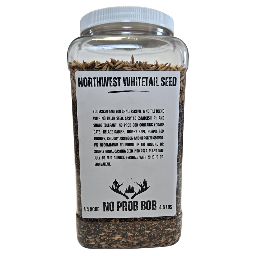 You asked and you shall receive. A no till blend with no filler seed. Easy to establish, ph and shade tolerant. No Prob Bob contains Forage Oats, Daikon Radish, Trophy Rape, Purple Top Turnips, Chicory, Crimson and Berseem clover. We recommend roughing up the ground or simply broadcasting seed into area. Plant late July to mid august. Fertilize with 19-19-19 or equivalent.