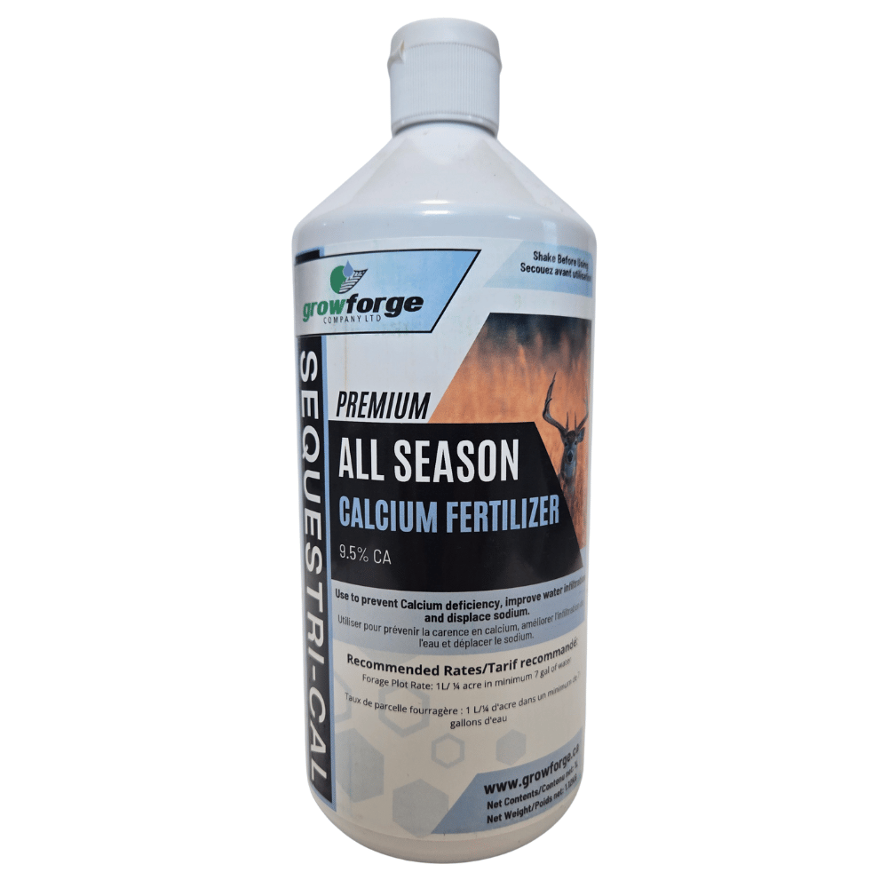 Sequestri-Cal is a 9.5% fully chelated and highly available source of calcium. This chelation technology ensures an efficient absorption of calcium by plant roots, leaves and other tissues. This product will not change your soil Ph, but will supplement the soil and plants calcium deficiency. Which will improve yields and germination. Each 1L bottle does a 1/4 acre in 4-8 gallons of water.